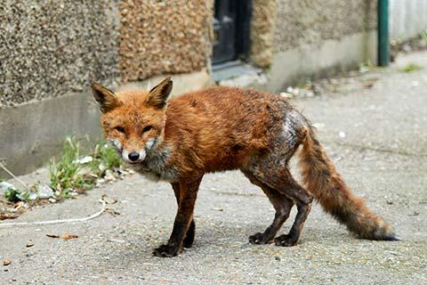 Sarcoptic mange is a mite that burrows into the skin and causes intense itching. This causes the fox to scratch at the area, resulting in fur loss, skin damage and open wounds which has the potential to become infected. Please contact your closest Wildlife Rescue Centre for guidance.